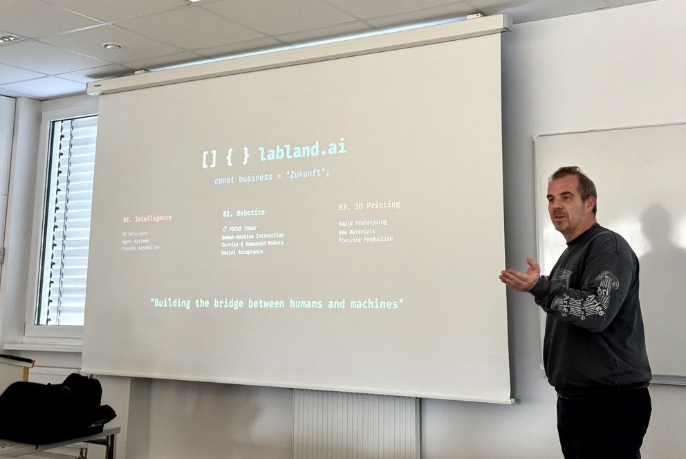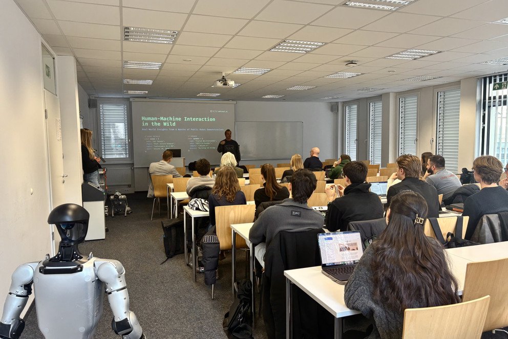 Letzten Dienstag durften wir Florian Weichselbaumer, CEO und Gründer von Labland AI, für einen spannenden Gastvortrag in unserer Bachelorveranstaltung „Foundations of Human-Computer Interaction“ begrüßen. In seinem Vortrag gab er Einblicke in die Arbeit seines Teams, das an der Schnittstelle von KI, Robotik und 3D Printing intelligente Service- und humanoide Roboter entwickelt und erprobt, um die Interaktion zwischen Menschen und Maschinen zu verstehen und zu verbessern. Ein besonderes Highlight war die Live-Demonstration, bei der die Studierenden selbst mit den Robotern interagieren konnten und einem Unitree G1 Roboter neue Bewegungen beibringen durften. Vielen Dank für die wertvollen Einblicke aus der Praxis!