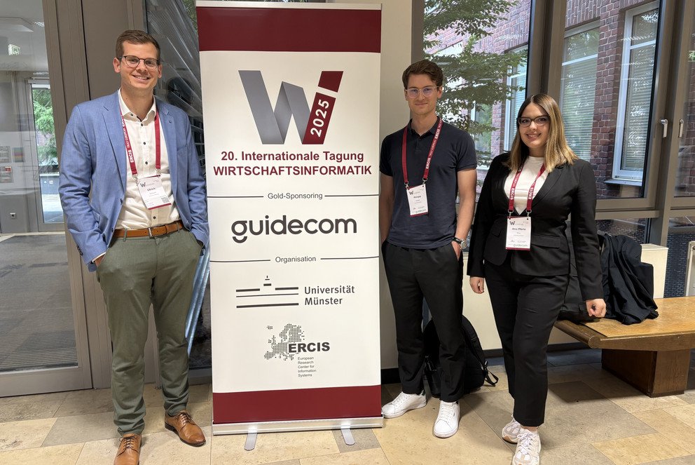 Im September nahm das gesamte Lehrstuhl-Team an der Internationalen Tagung Wirtschaftsinformatik in Münster teil. Neben spannenden Vorträgen und dem fachlichen Austausch mit anderen Forschenden war ein besonderes Highlight der Workshop „Künstliche Intelligenz in der Arbeitswelt: Den Wandel gestalten“. Dort präsentierten Ana-Maria Sirbu und Prof. Gnewuch erste Ergebnisse aus dem bidt-Forschungsprojekt „Vertrauenswürdige KI-Copiloten für bessere datenbasierte Entscheidungen in Unternehmen“ und diskutierten diese mit den anderen Teilnehmenden.
